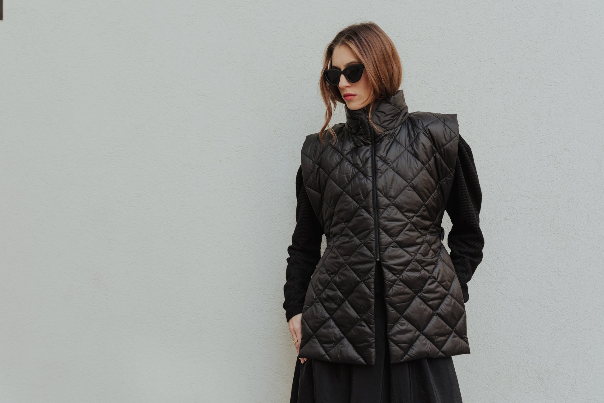 רוכסן שחור נרכס לכל אורכו לצווארון גולף גבוהה