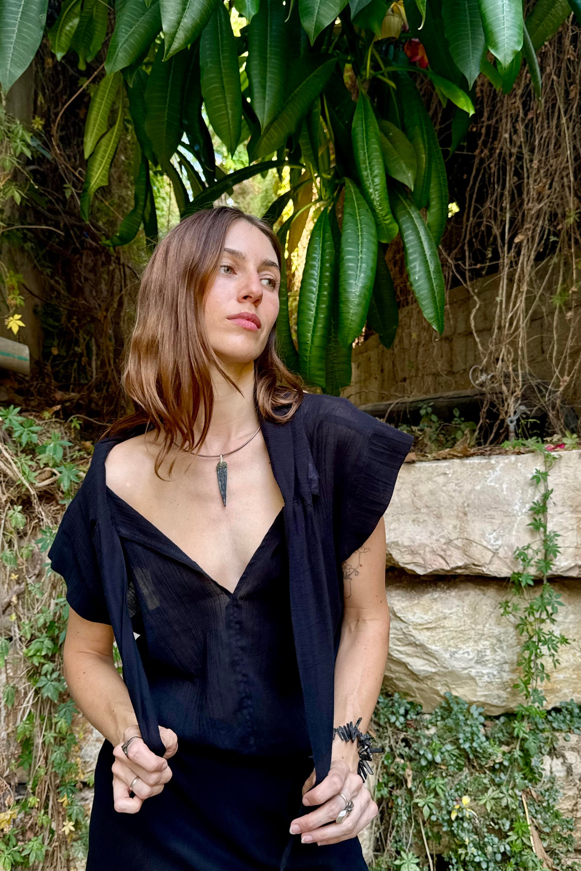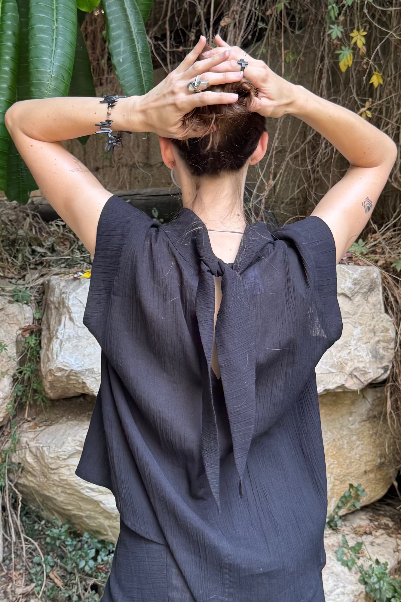 ניתן ללבוש את החולצה כשהקשירה מלפנים והגולף לגב