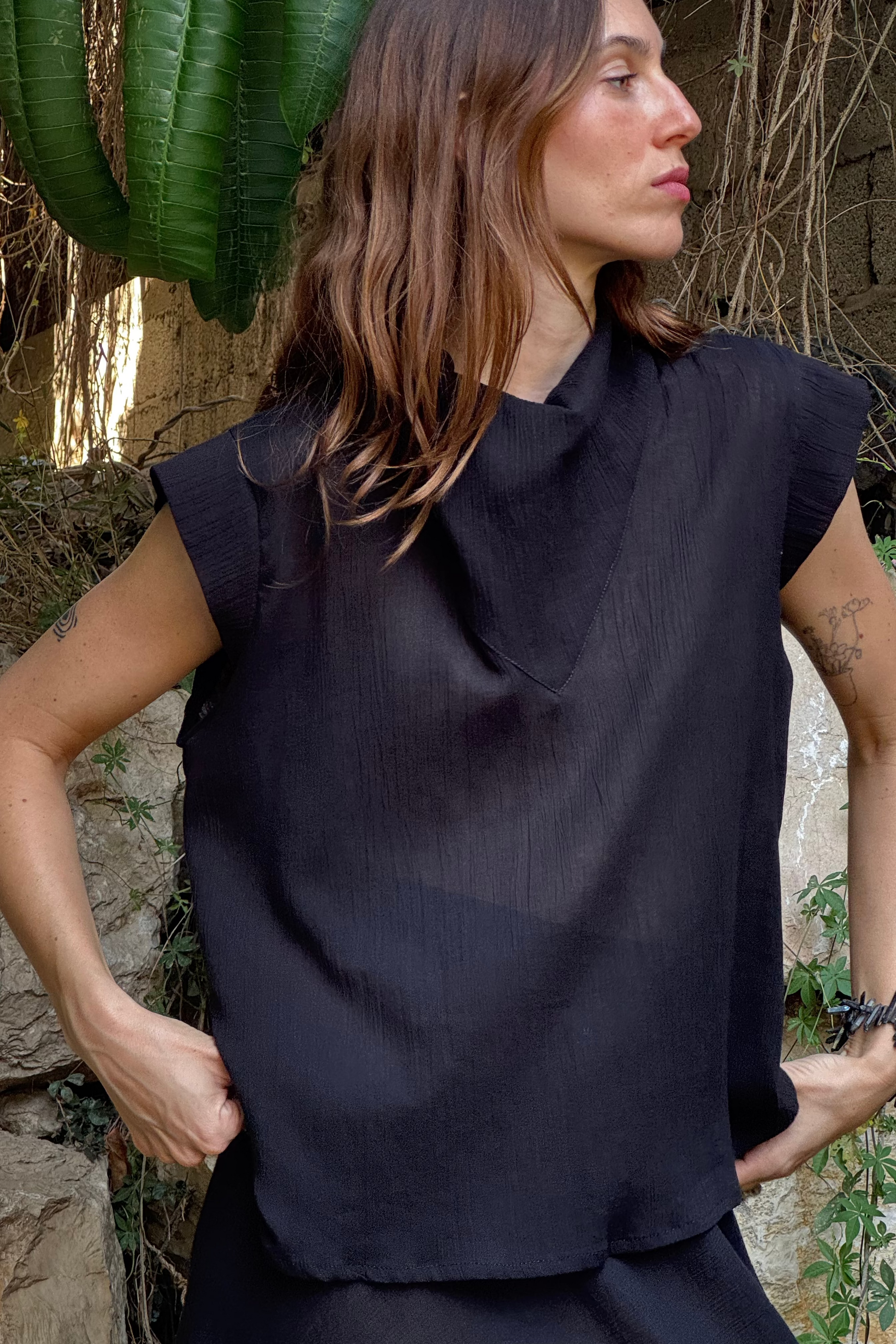 חולצה ורסטילית במראה אלגנטי עם צווארון גולף בצורת מטפחת